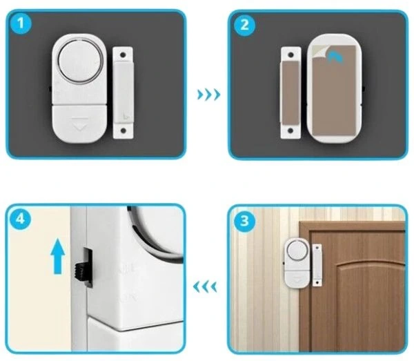 Cukup ditempel menggunakan tape yang sudah tersedia. ON untuk menggunakan alarm, maka Alarm akan berbunyi nyaring jika ada yang membukanya. Switch ke posisi Off jika tidak digunakan.